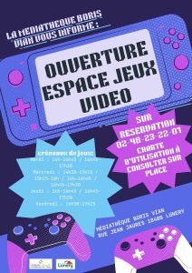 L’Espace Jeux Vidéo de la Médiathèque Boris Vian est ouvert suivant les créneaux suivants :