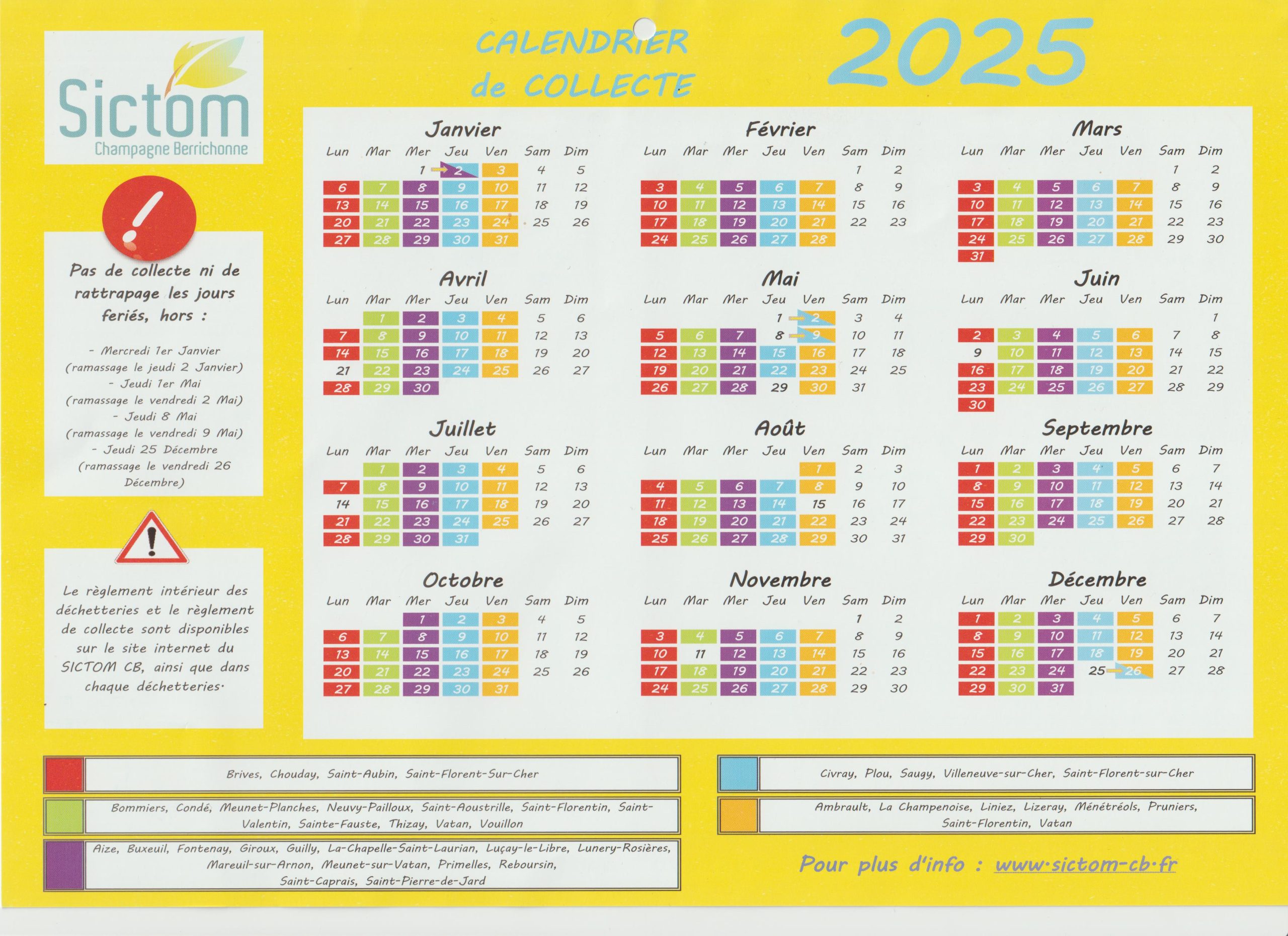 Calendrier de collecte Sictom 2025 Calendrier de collecte Sictom 2025
